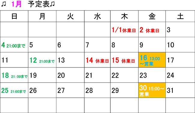 2025.12.27 R8.1月の日程表です。(青葉区二日町仙台メディカル整骨院)